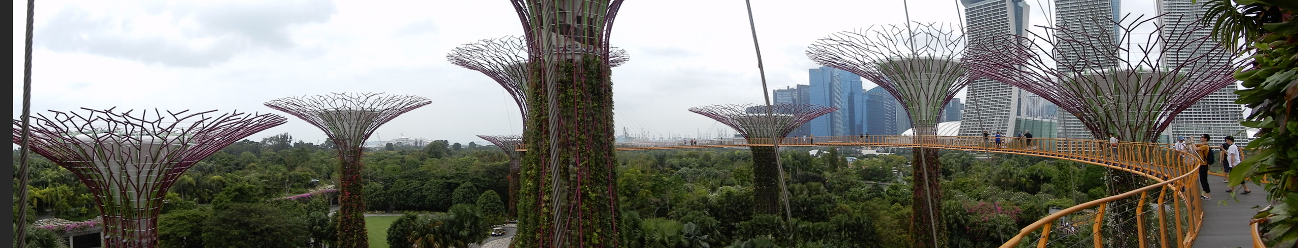 Karen still wasn’t well enough to go out at night so I went to the spectacular Gardens By The Bay with Anne and Stan. Marie was also too tired to go out. The Gardens are actually three attractions, the Cloud Dome, Flower Dome, and Supertree Grove. The Domes are unbelievably large glass enclosures that house the attractions. The Cloud Forest was the most amazing. A seven story, 138 foot mountain simulating the tropics with stunning aerial walkways more beautiful than the real thing. The Flower Dome is the largest glass enclosure in the world and has many flora from various regions of the world including a huge Japanese garden and a California garden. Most unusual was the many animals shaped from tree branches and bark. We barely got out of the Domes to see the 7:45 Garden Rhapsody light show which was another amazing display of lights and technology. The Supertree Grove includes 12 man made trees up to 150 feet high that simulate the function of real trees by collecting energy, water, and has intakes and exhausts as part of the cooling system of the park. The light show is a dizzying array of lights to music that remind you of a fireworks show. There is an elevated walkway 100 feet above that connects 5 of the trees that closed at 8:30 that I will have to come back for. This massive garden is one of 3 areas built on reclaimed land, the other 2 areas are still being developed in a similar manner.