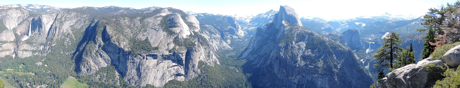 Today was planned as another leisure day exploring the southern part of the park and primarily Glacier Point and Wawona meadows. The road to Glacier Point was 32 winding miles out of our way and I was just grumbling how no view would be worth the drive when we came to Washburn Point and I was proven wrong. Spectacular overlook of Yosemite Valley where you can see Half Dome, Vernal, Nevada, and Illilouette Falls in one snapshot.